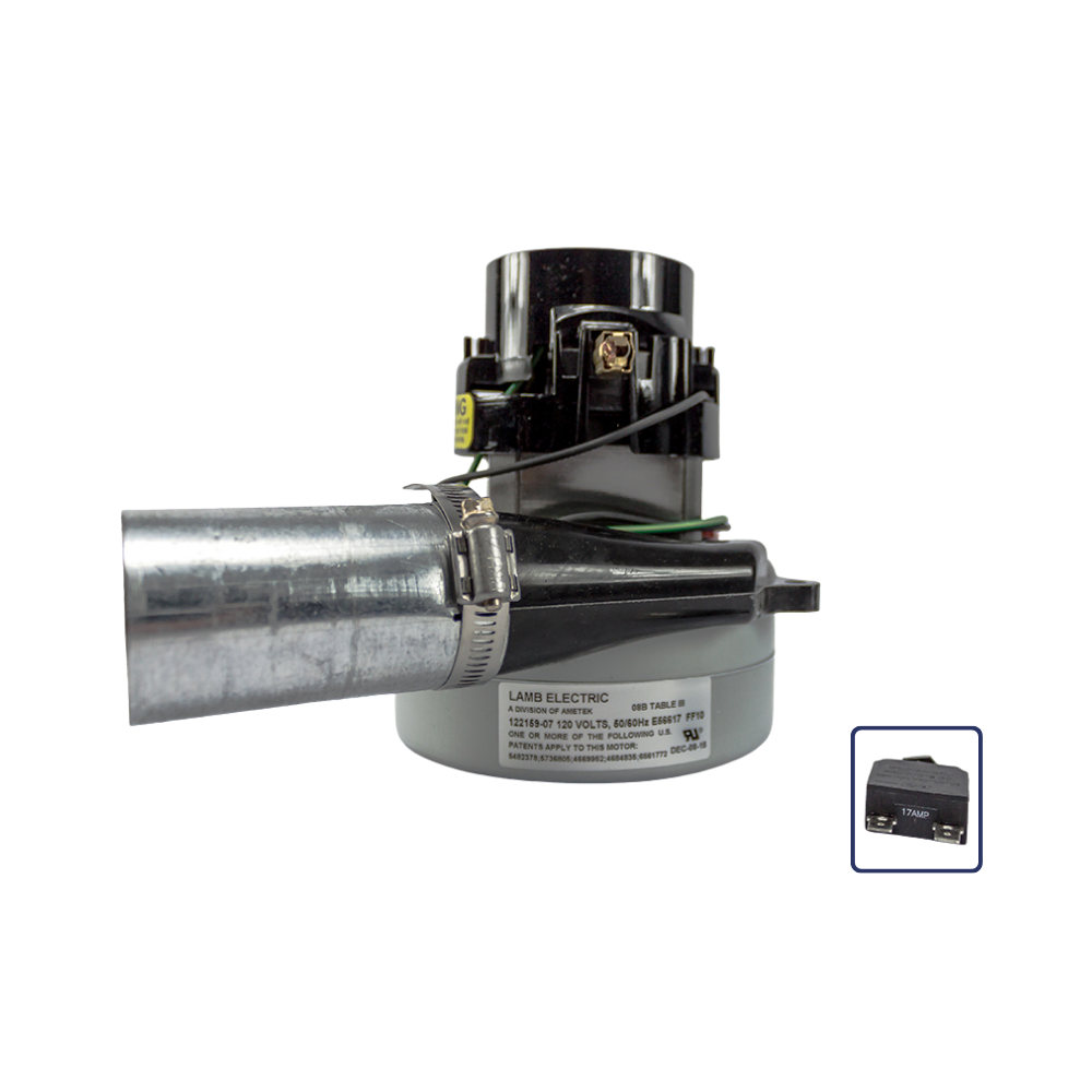 - 1 NEW Vacuflo Ametek Lamb Replacement Motor 122159-07 (the -07 is included because this motor has had its fan blades changed to make it less likely for dirt to get caught within them)